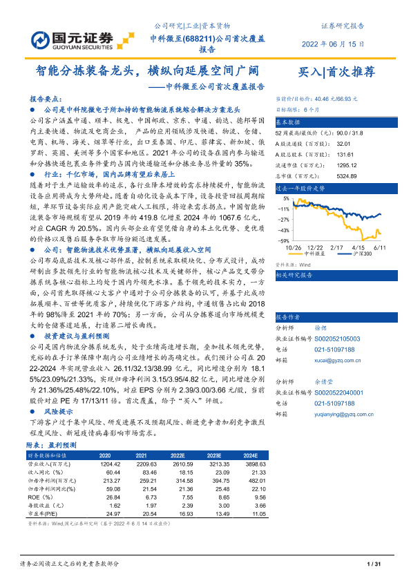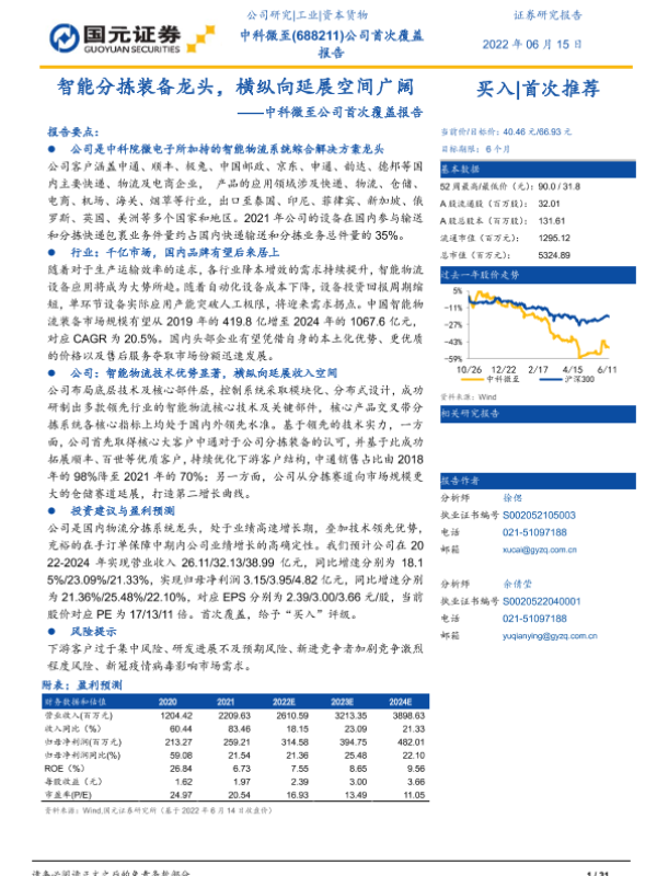 【国元证券】【20220615】智能分拣装备龙头,横纵向延展空间广阔-31页