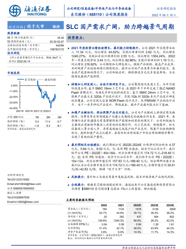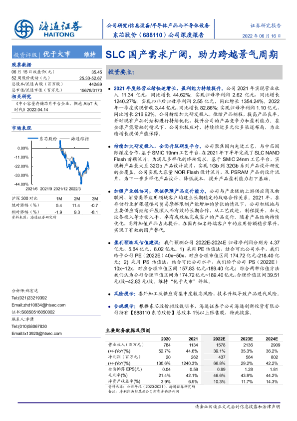 【海通证券】【20220616】20220616-海通证券-东芯股份-688110.SH-公司深度报告:SLC国产需求广阔,助力跨越景气周期-21页