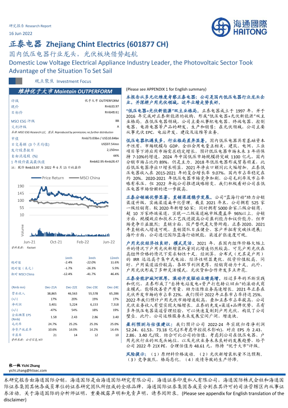 【海通国际】【20220616】国内低压电器行业龙头,光伏板块借势起航-41页
