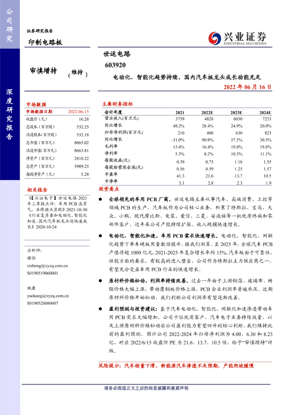PCB 世运电路 智能化 汽车板 电动化
