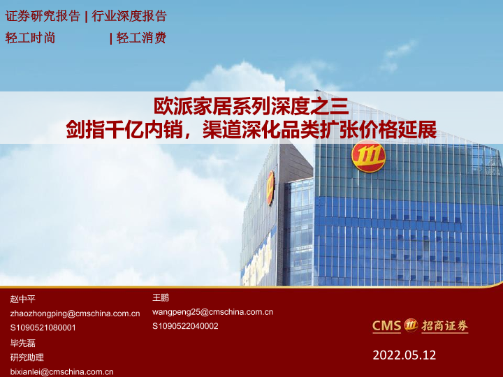 【海通证券】【20220512】轻工消费行业欧派家居系列深度之三:剑指千亿内销,渠道深化品类扩张价格延展-30页