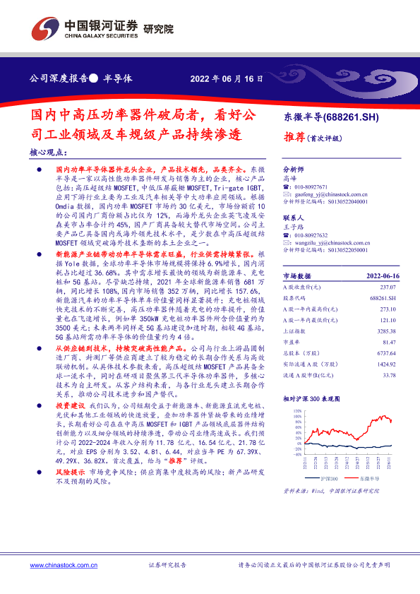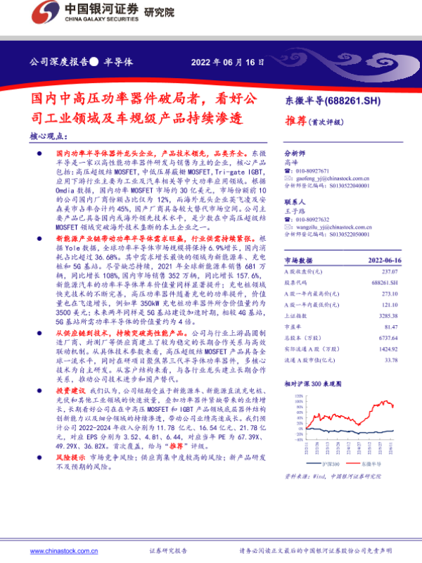 【银河证券】【20220616】国内中高压功率器件破局者,看好公司工业领域及车规级产品持续渗透-32页
