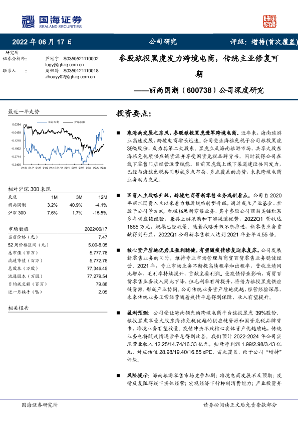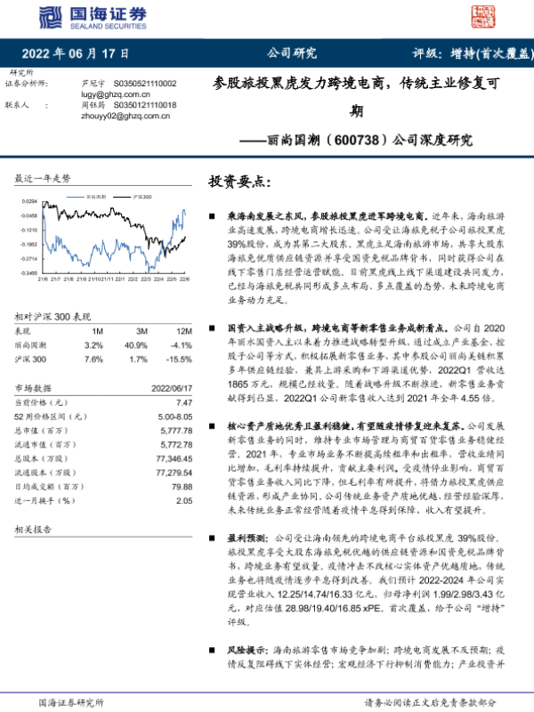 【国海证券】【20220617】参股旅投黑虎发力跨境电商,传统主业修复可期-16页