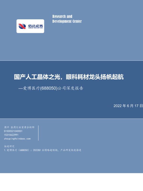 【信达证券】【20220617】国产人工晶体之光,眼科耗材龙头扬帆起航-32页