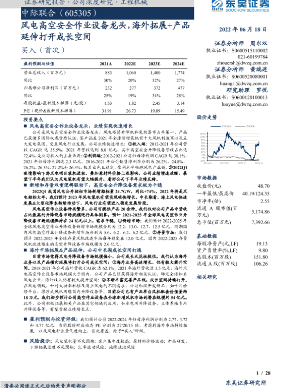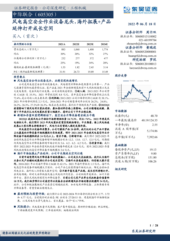 【东吴证券】【20220618】中际联合(605305):风电高空安全作业设备龙头,海外拓展+产品延伸打开成长空间-28页