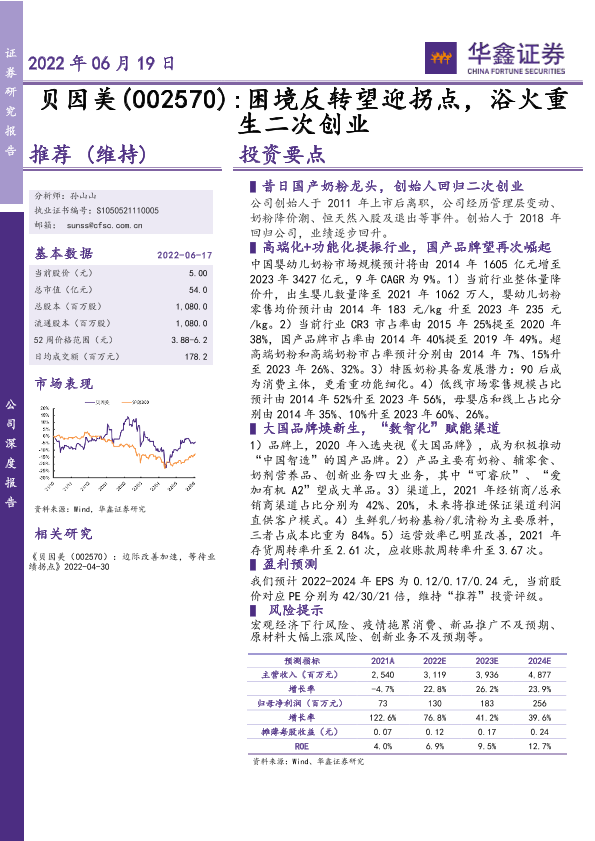 【华鑫证券】【20220619】贝因美(002570) 困境反转望迎拐点,浴火重生二次创业-50页