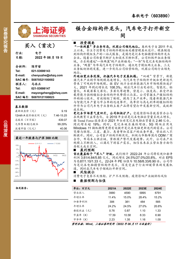 【上海证券】【20220619】春秋电子-镁合金结构件龙头,汽车电子打开新空间-20页