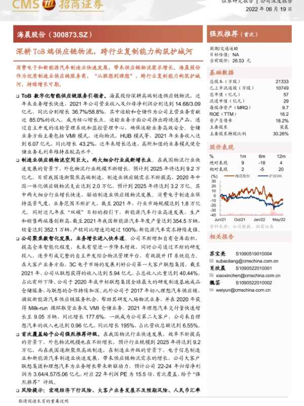 【海通证券】【20220619】深耕ToB端供应链物流,跨行业复制能力构筑护城河-25页