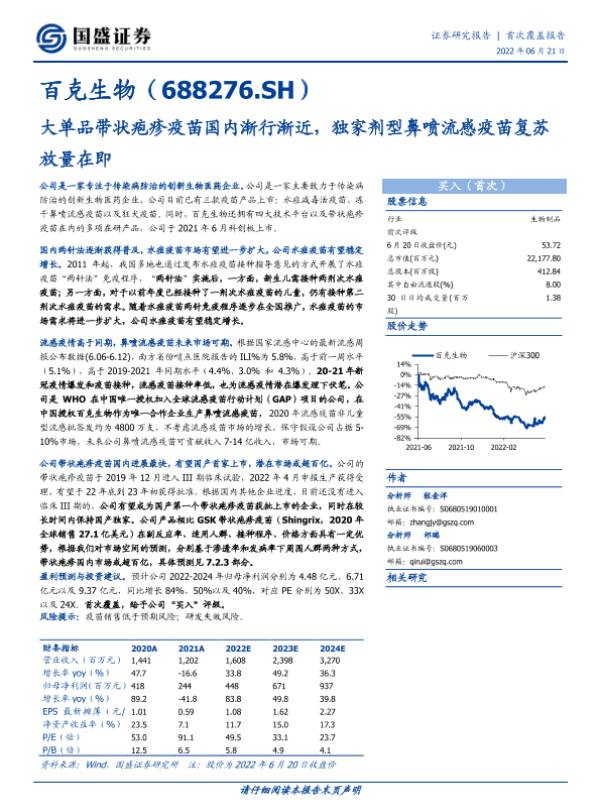 【国盛证券】【20220621】大单品带状疱疹疫苗国内渐行渐近,独家剂型鼻喷流感疫苗复苏放量在即-26页