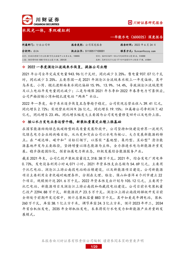 【川财证券】【20220624】华能水电-600025.SH-深度报告:水风光一体,享双碳红利-20页