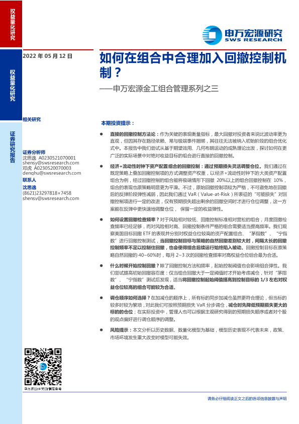 【申万宏源】【20220512】金工组合管理系列之三:如何在组合中合理加入回撤控制机制?-25页