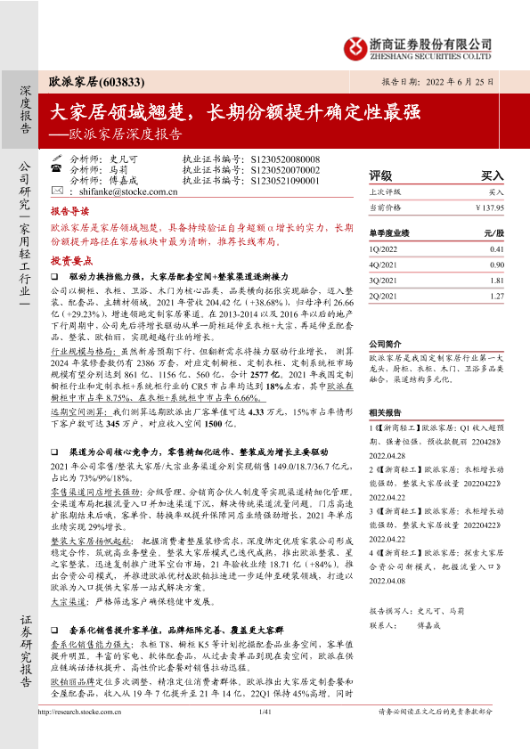 【浙商证券】【20220625】欧派家居深度报告:大家居领域翘楚,长期份额提升确定性最强-41页