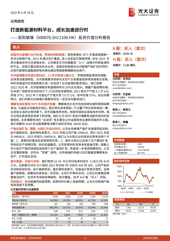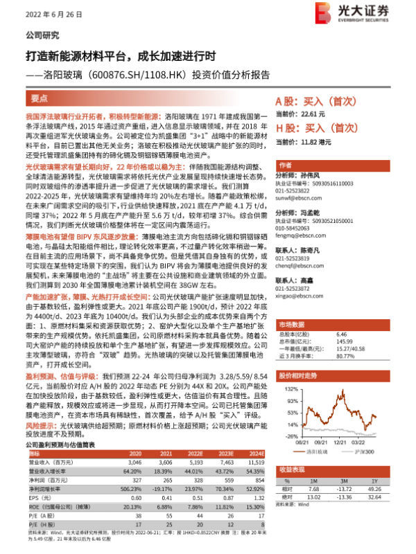 【光大证券】【20220626】打造新能源材料平台,成长加速进行时——洛阳玻璃(600876.SH/1108.HK)投资价值分析报告-28页