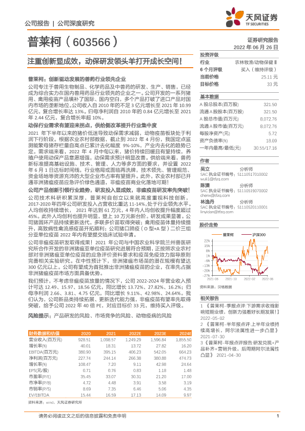 【天风证券】【20220626】普莱柯-注重创新显成效,动保研发领头羊打开成长空间!-23页