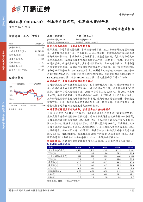【开源证券】【20220626】20220626-开源证券-国联证券-601456.SH-公司首次覆盖报告:创业型券商典范,长期成长穿越牛熊-23页