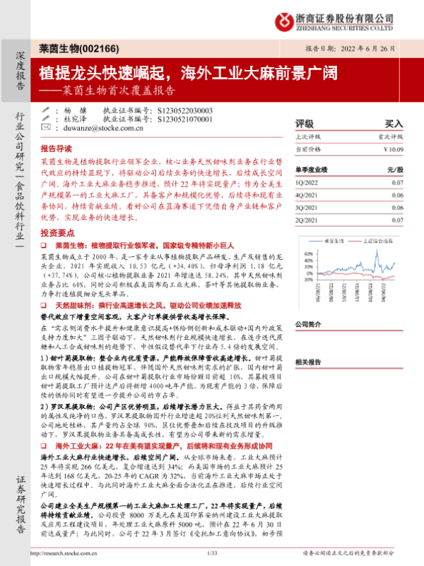 【浙商证券】【20220626】莱茵生物首次覆盖报告:植提龙头快速崛起,海外工业大麻前景广阔-33页
