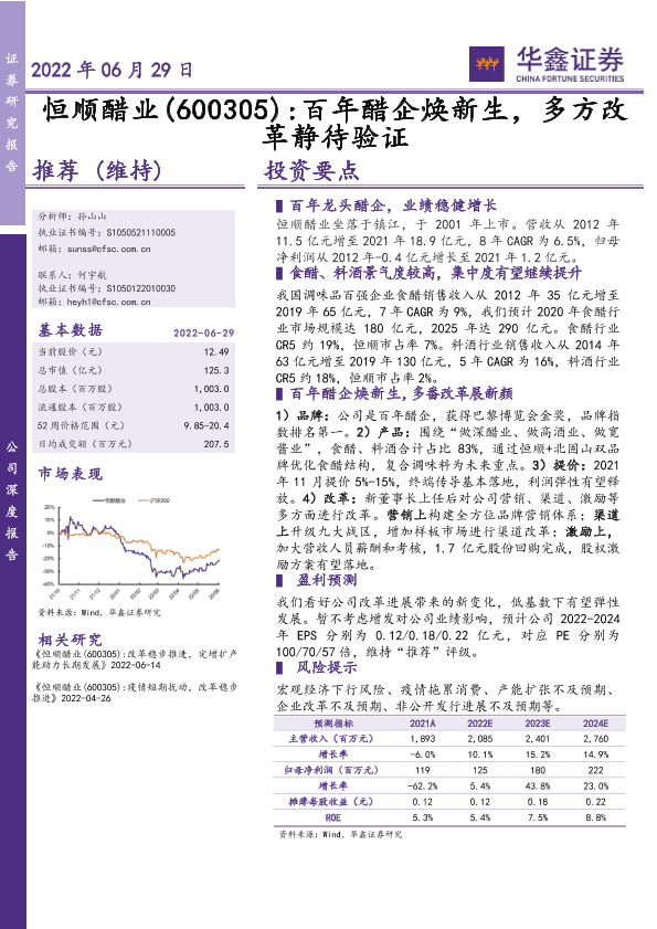 【华鑫证券】【20220629】恒顺醋业(600305) 百年醋企焕新生,多方改革静待验证-33页