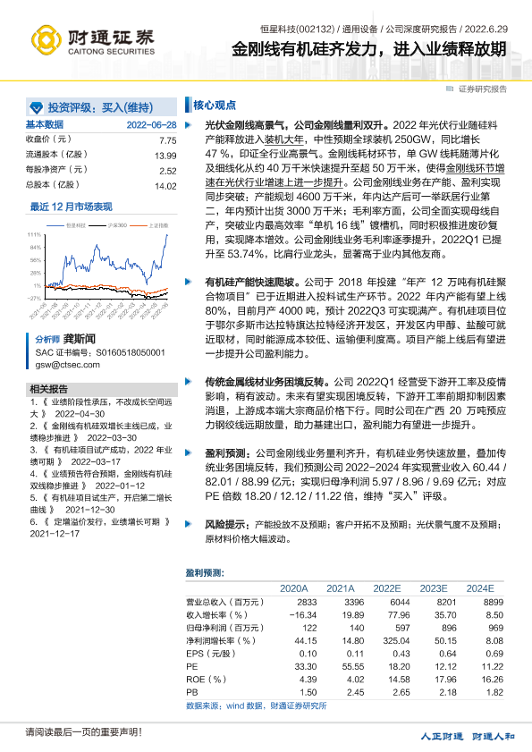 【财通证券】【20220629】恒星科技-002132.SZ-金刚线有机硅齐发力,进入业绩释放期-31页