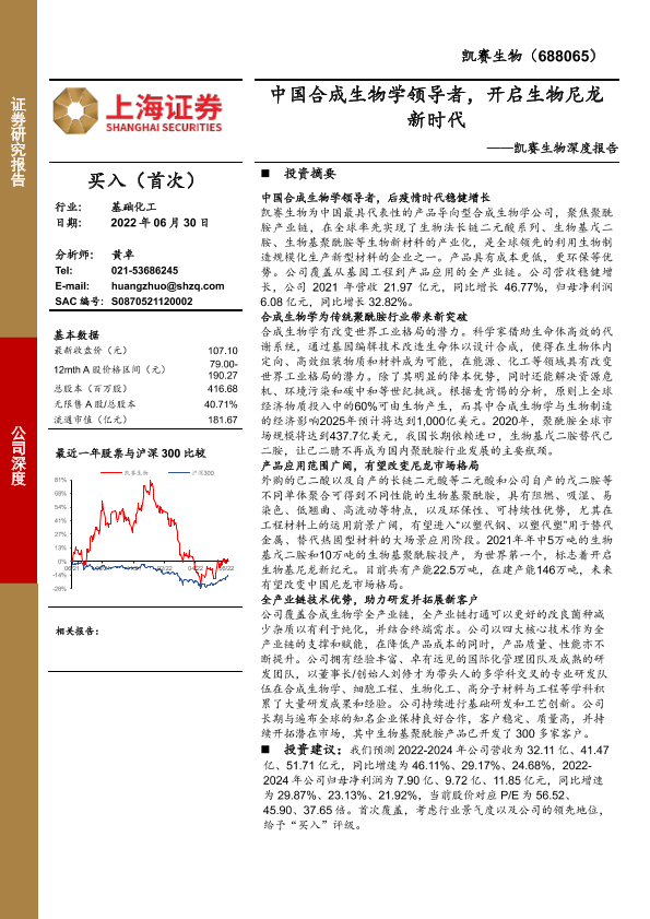 【上海证券】【20220630】20220630-上海证券-凯赛生物-688065.SH-凯赛生物深度报告:中国合成生物学领导者,开启生物尼龙新时代-25页