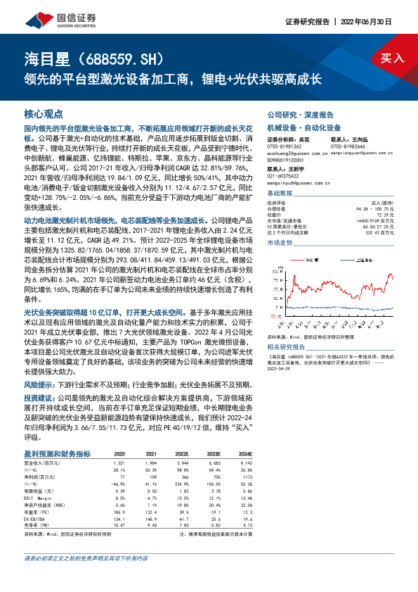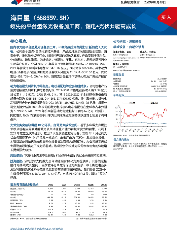 【国信证券】【20220630】领先的平台型激光设备加工商,锂电+光伏共驱高成长-51页