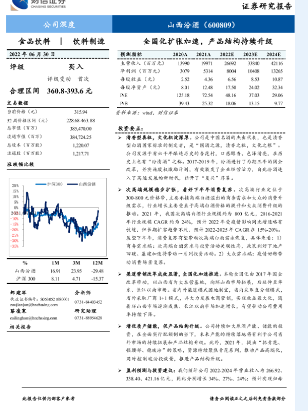 产品结构升级 全国化扩张 国企改革 次高端白酒 汾酒