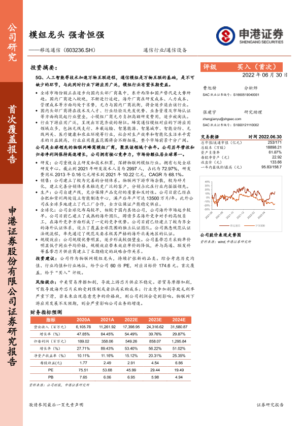 【申港证券】【20220630】模组龙头 强者恒强——移远通信(603236.SH)-32页