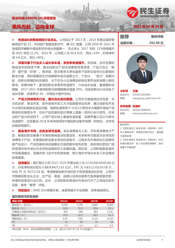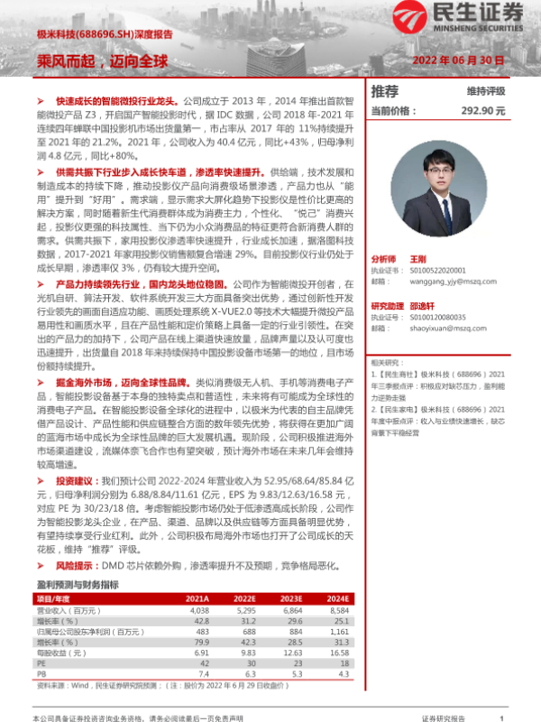 【民生证券】【20220630】极米科技(688696.SH)深度报告:乘风而起,迈向全球-30页