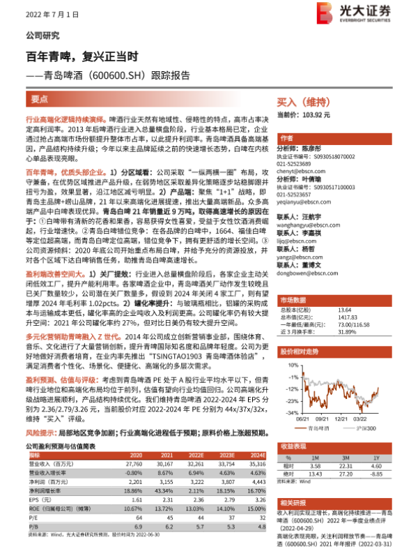【光大证券】【20220701】20220701-光大证券-青岛啤酒-600600.SH-跟踪报告:百年青啤,复兴正当时-25页
