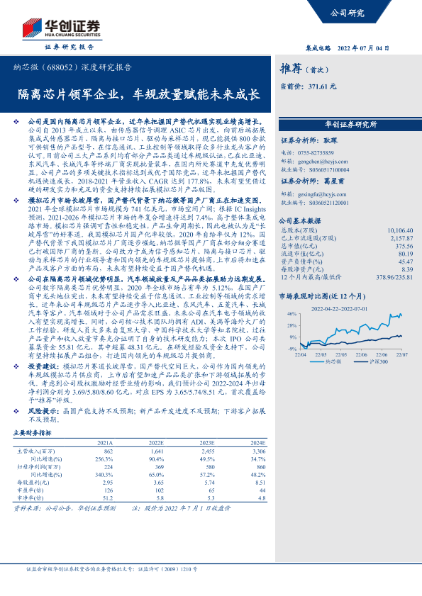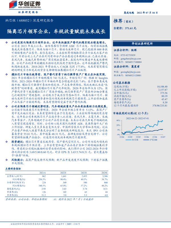 【华创证券】【20220704】20220704-华创证券-纳芯微-688052.SH-深度研究报告:隔离芯片领军企业,车规放量赋能未来成长-32页