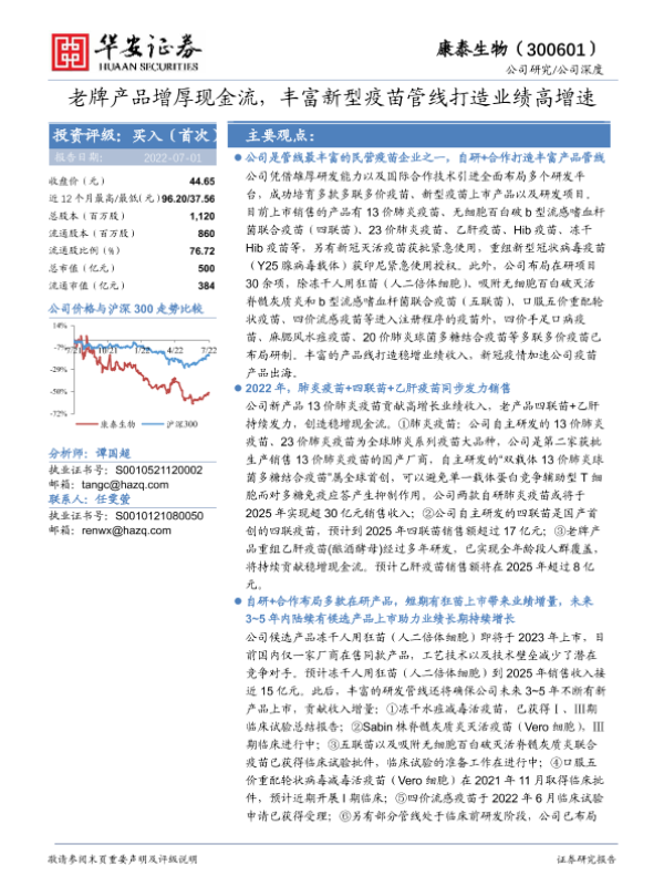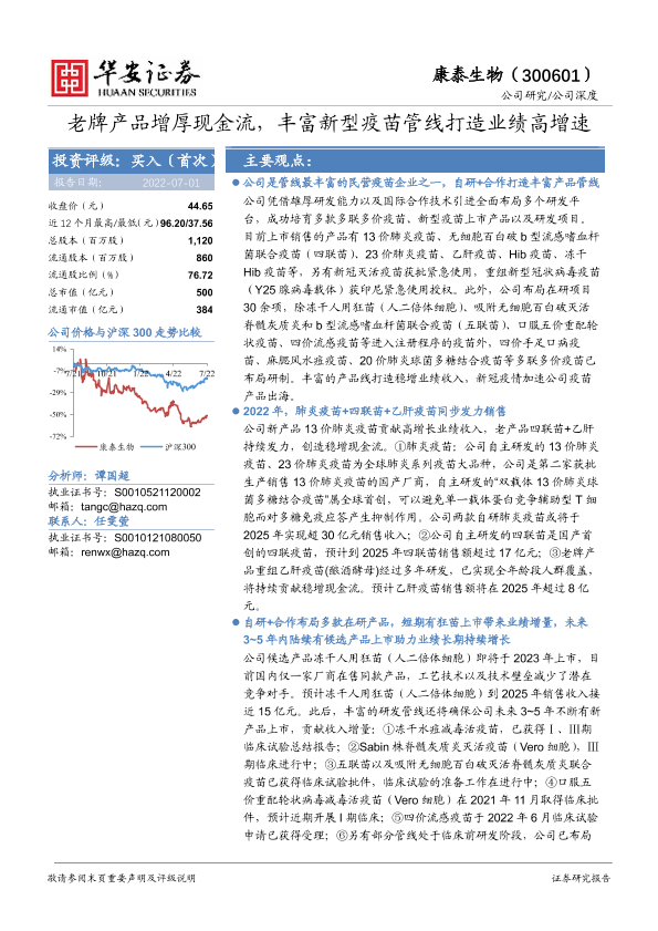 【华安证券】【20220701】老牌产品增厚现金流,丰富新型疫苗管线打造业绩高增速-33页