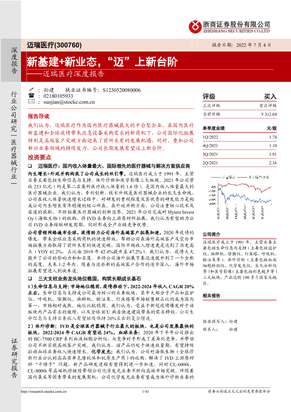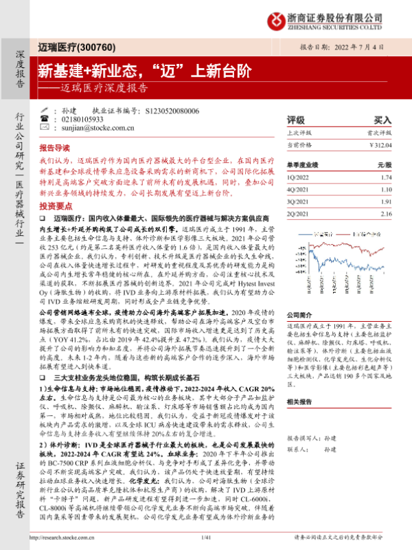 【浙商证券】【20220704】迈瑞医疗深度报告:新基建+新业态,“迈”上新台阶-41页