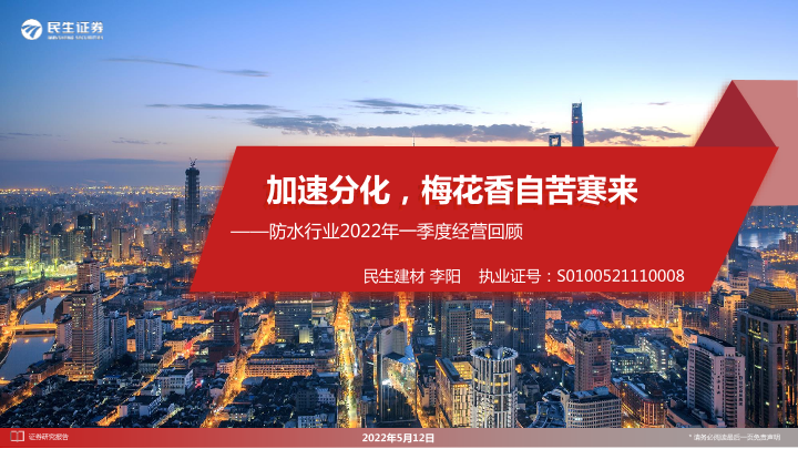 【民生证券】【20220512】防水行业2022年一季度经营回顾:加速分化,梅花香自苦寒来-19页