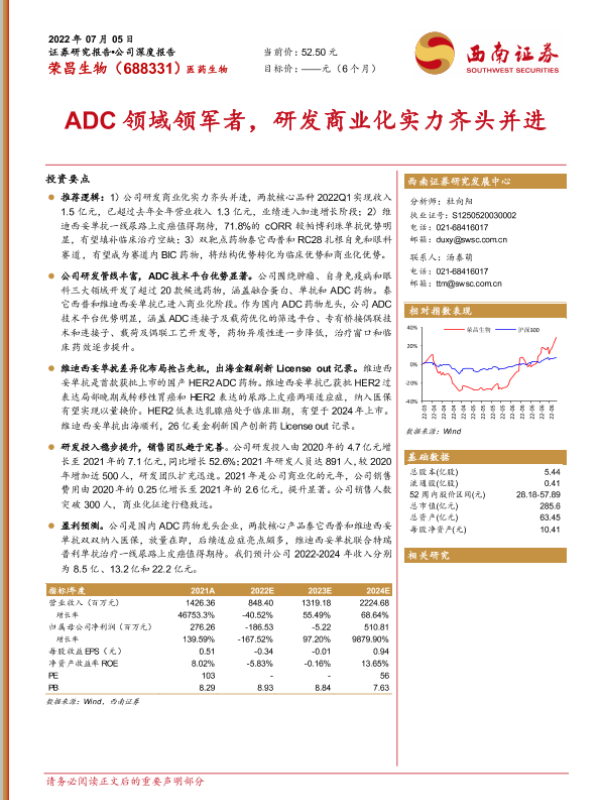 【西南证券】【20220705】20220705-西南证券-荣昌生物-688331.SH-ADC领域领军者,研发商业化实力齐头并进-42页