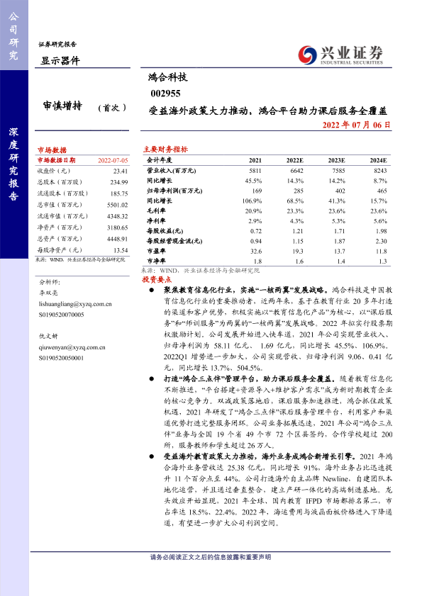 【兴业证券】【20220706】受益海外政策大力推动,鸿合平台助力课后服务全覆盖-21页