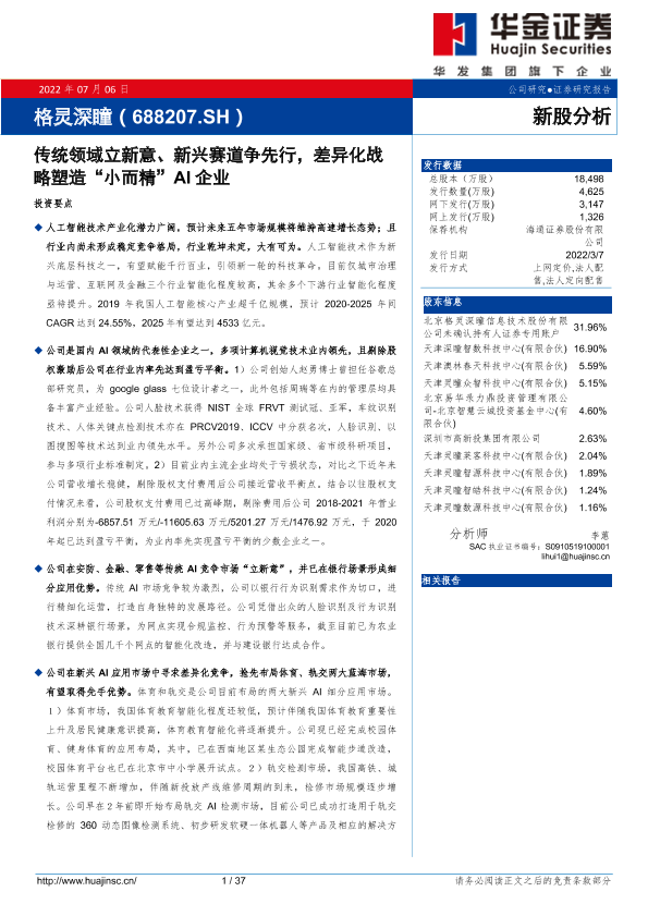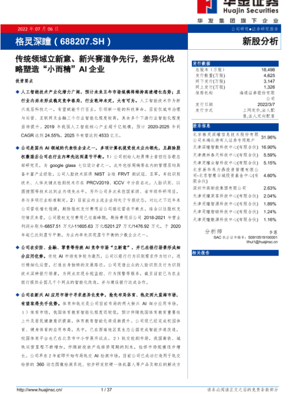 【华金证券】【20220706】20220706-华金证券-格灵深瞳-688207.SH-传统领域立新意、新兴赛道争先行,差异化战略塑造“小而精”AI企业-37页