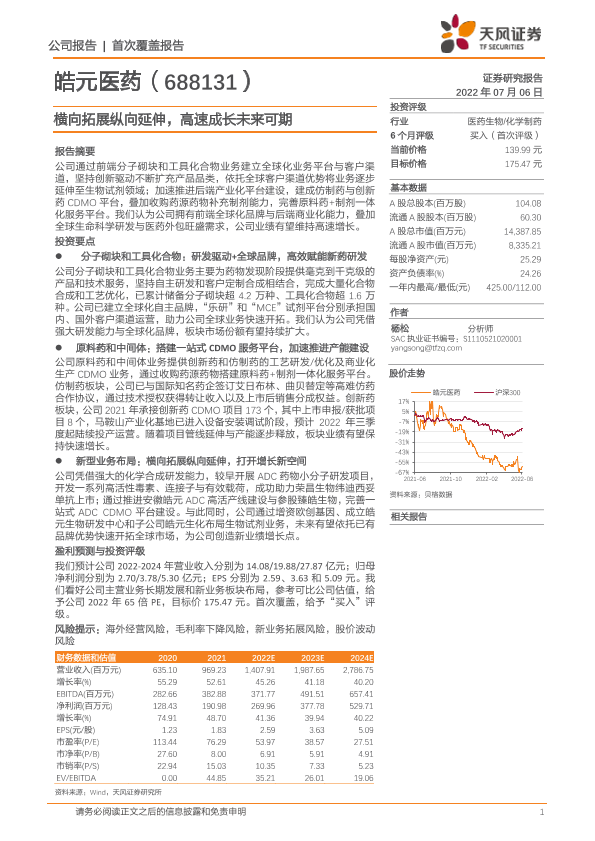 【天风证券】【20220706】皓元医药-横向拓展纵向延伸,高速成长未来可期-32页