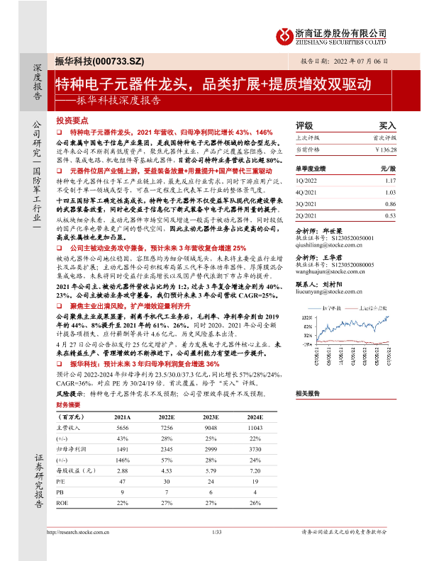 【浙商证券】【20220706】振华科技深度报告:特种电子元器件龙头,品类扩展+提质增效双驱动-33页