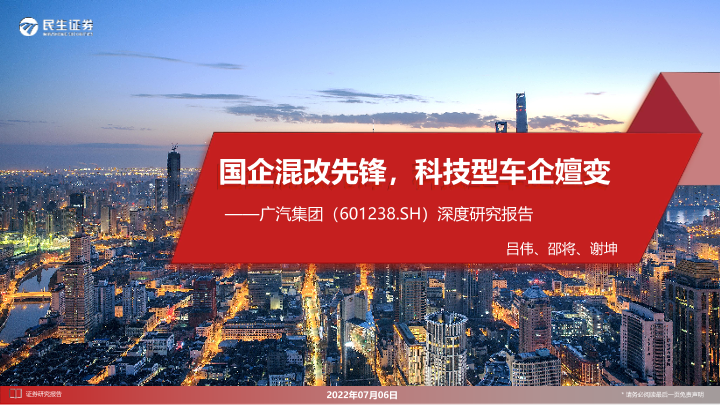 【民生证券】【20220706】广汽集团(601238.SH)深度研究报告:国企混改先锋,科技型车企嬗变-86页