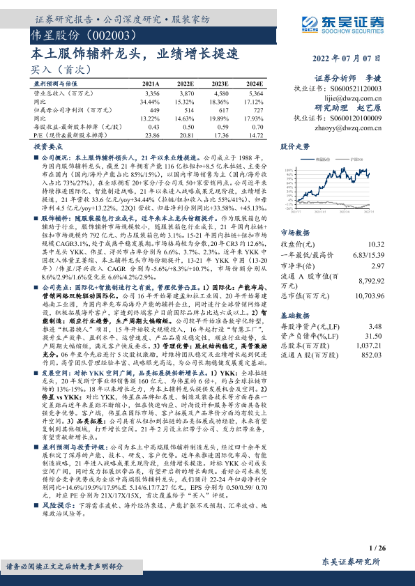 【东吴证券】【20220707】本土服饰辅料龙头,业绩增长提速-26页