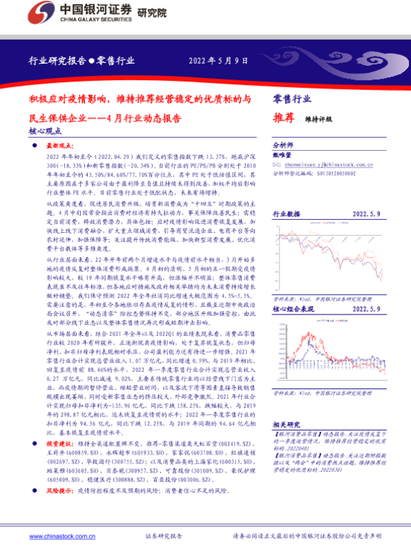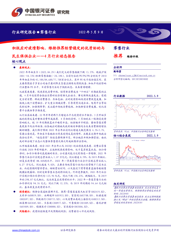 【银河证券】【20220509】零售行业4月行业动态报告:积极应对疫情影响,维持推荐经营稳定的优质标的与民生保供企业-28页