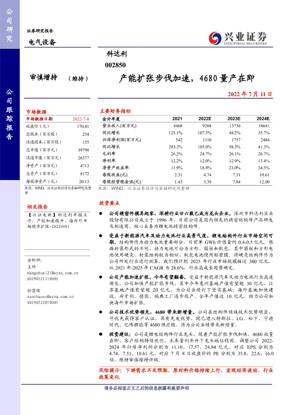 【兴业证券】【20220711】产能扩张步伐加速,4680量产在即-22页