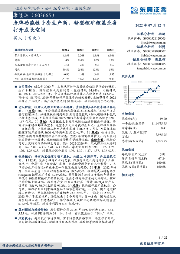 【东吴证券】【20220712】老牌功能性手套生产商,转型锂矿锂盐业务打开成长空间-22页