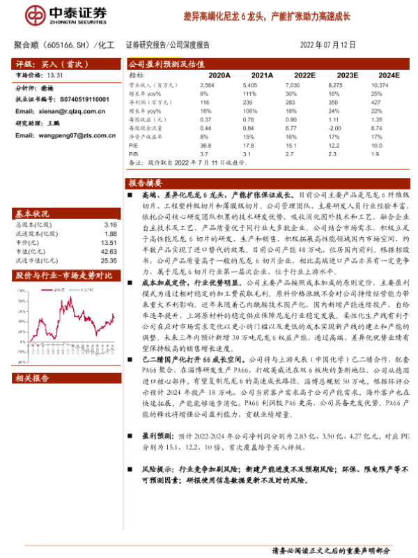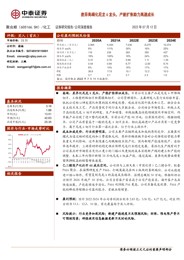 【中泰证券】【20220712】20220712-中泰证券-聚合顺-605166.SH-差异高端化尼龙6龙头,产能扩张助力高速成长-33页