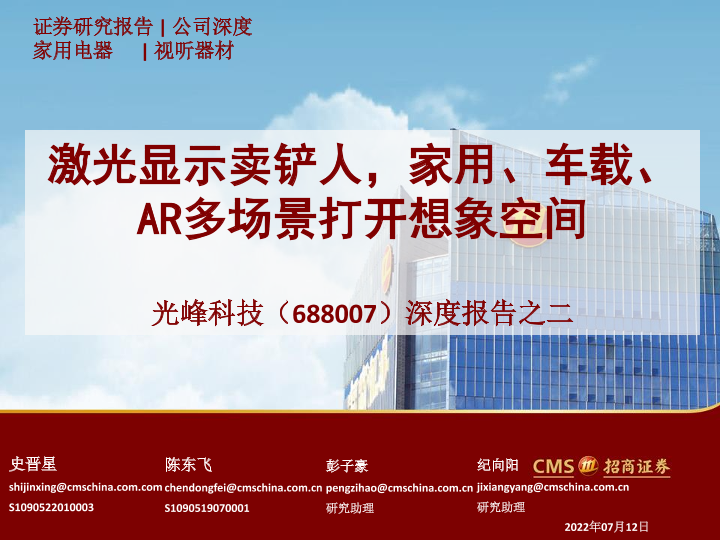 【海通证券】【20220712】光峰科技-688007.SH-深度报告之二:激光显示卖铲人,家用、车载、AR多场景打开想象空间-37页