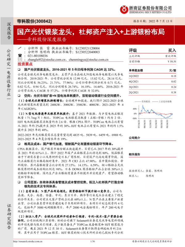 【浙商证券】【20220713】帝科股份深度报告:国产光伏银浆龙头,杜邦资产注入+上游银粉布局-36页
