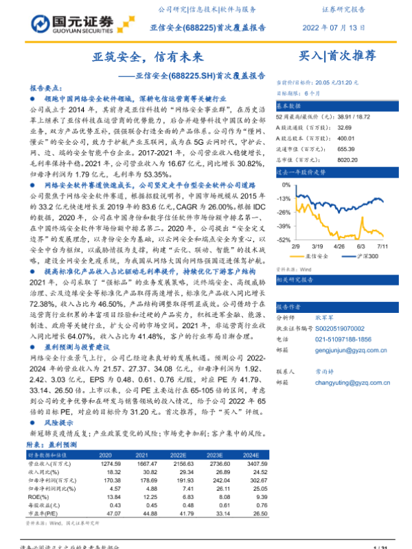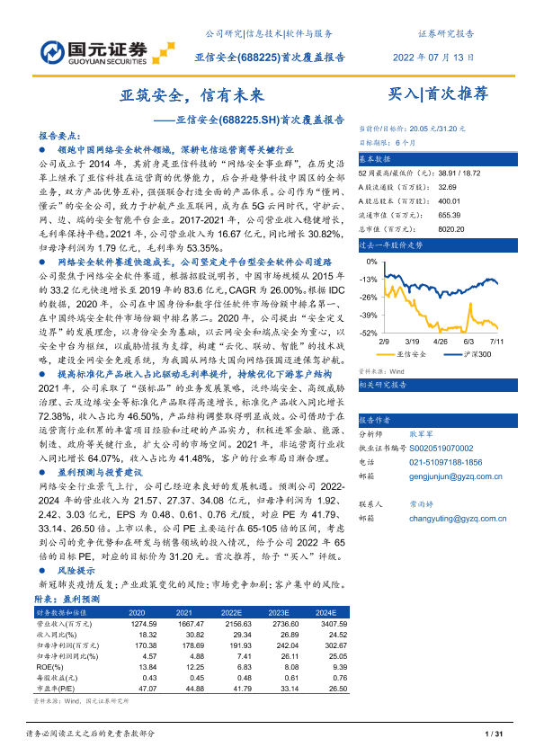 【国元证券】【20220713】亚筑安全,信有未来——亚信安全(688225.SH)首次覆盖报告-31页