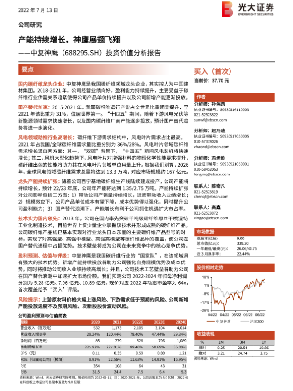 【光大证券】【20220713】产能持续增长,神鹰展翅飞翔——中复神鹰(688295.SH)投资价值分析报告-26页