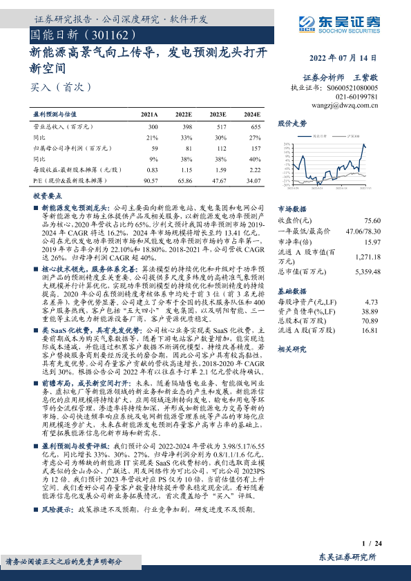 【东吴证券】【20220714】新能源高景气向上传导,发电预测龙头打开新空间-24页