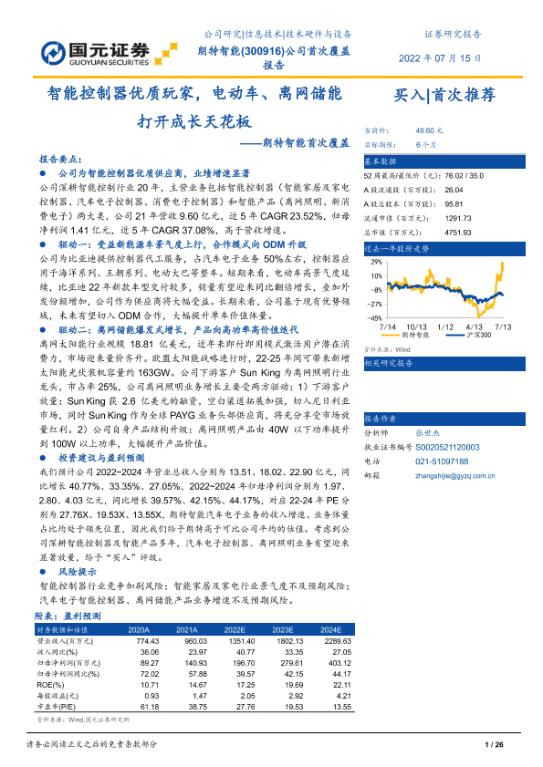 【国元证券】【20220715】朗特智能首次覆盖:智能控制器优质玩家,电动车、离网储能打开成长天花板-26页