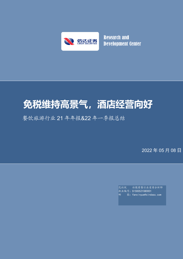 【信达证券】【20220508】餐饮旅游行业21年年报&22年一季报总结:免税维持高景气,酒店经营向好-25页